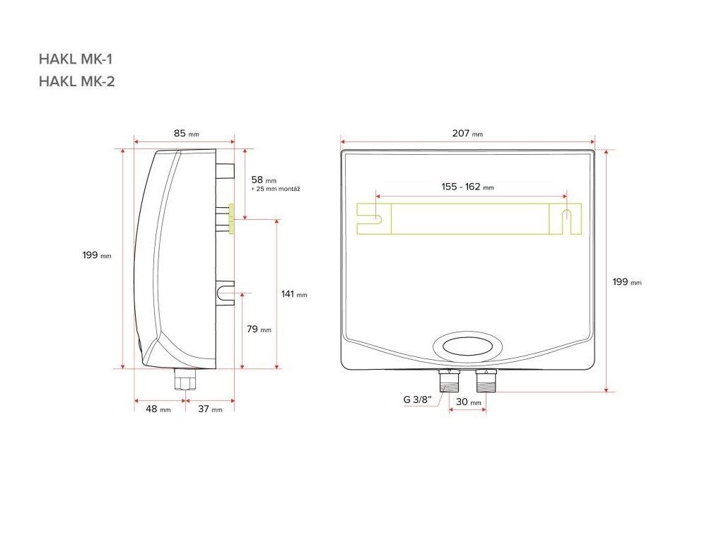 HAKL MK podgrzewa wodę natychmiast po przekręceniu zaworu ciepłej wody. Ogrzewacz nie posiada wbudowanego zbiornika na wodę, podgrzewa ją w sposób ciągły. Główną zaletą nagrzewnicy HAKL MK jest jej zdolność do pracy nawet w najtrudniejszych warunkach roboczych.