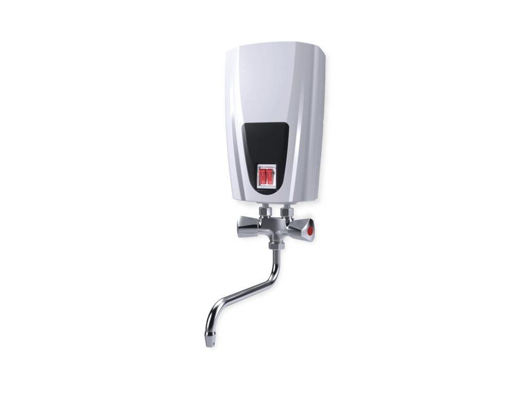Mały przepływowy podgrzewacz wody z baterią umywalkową (zlewozmywakową):